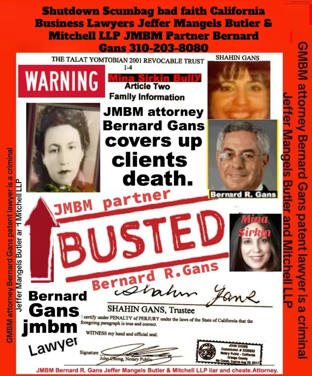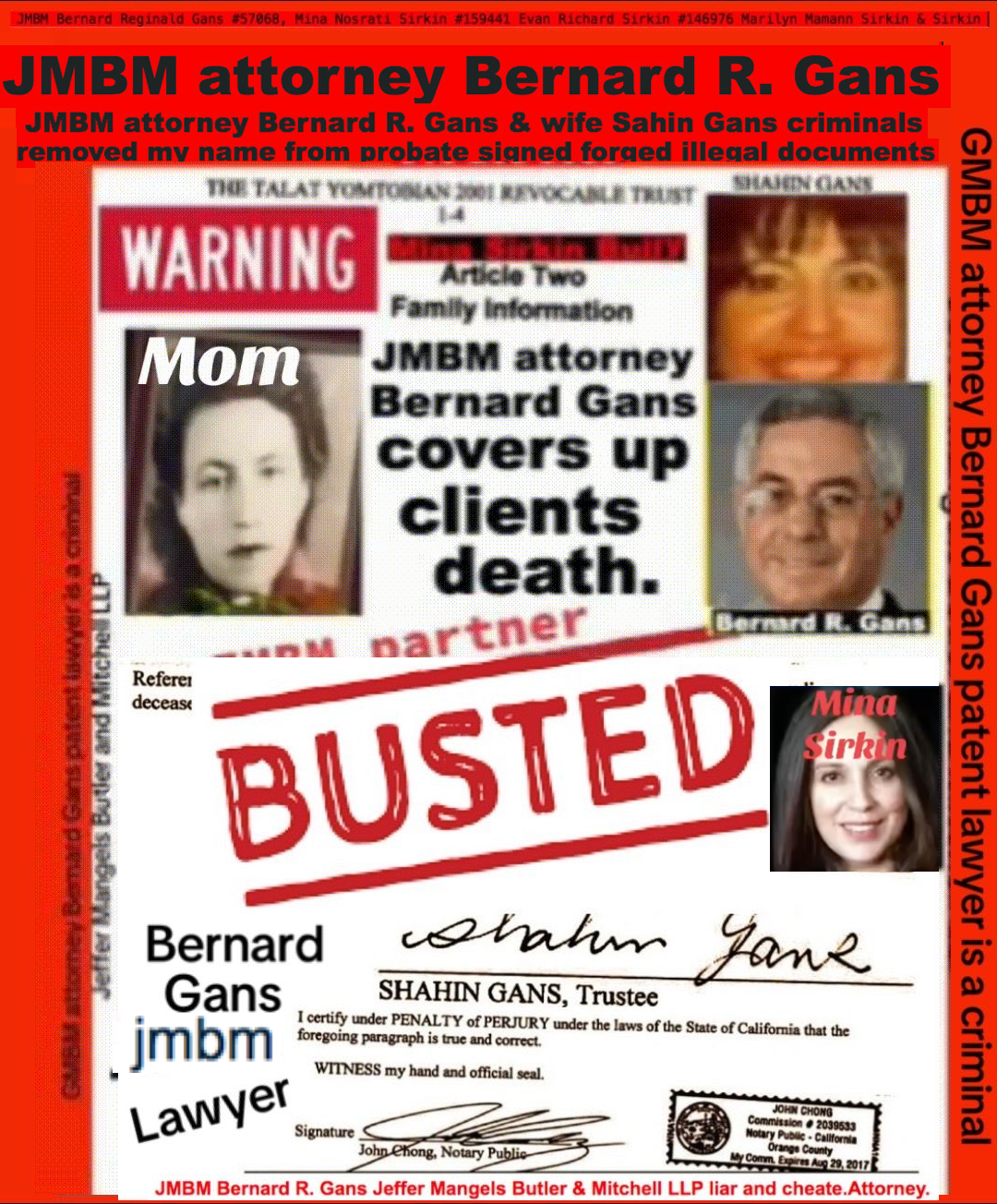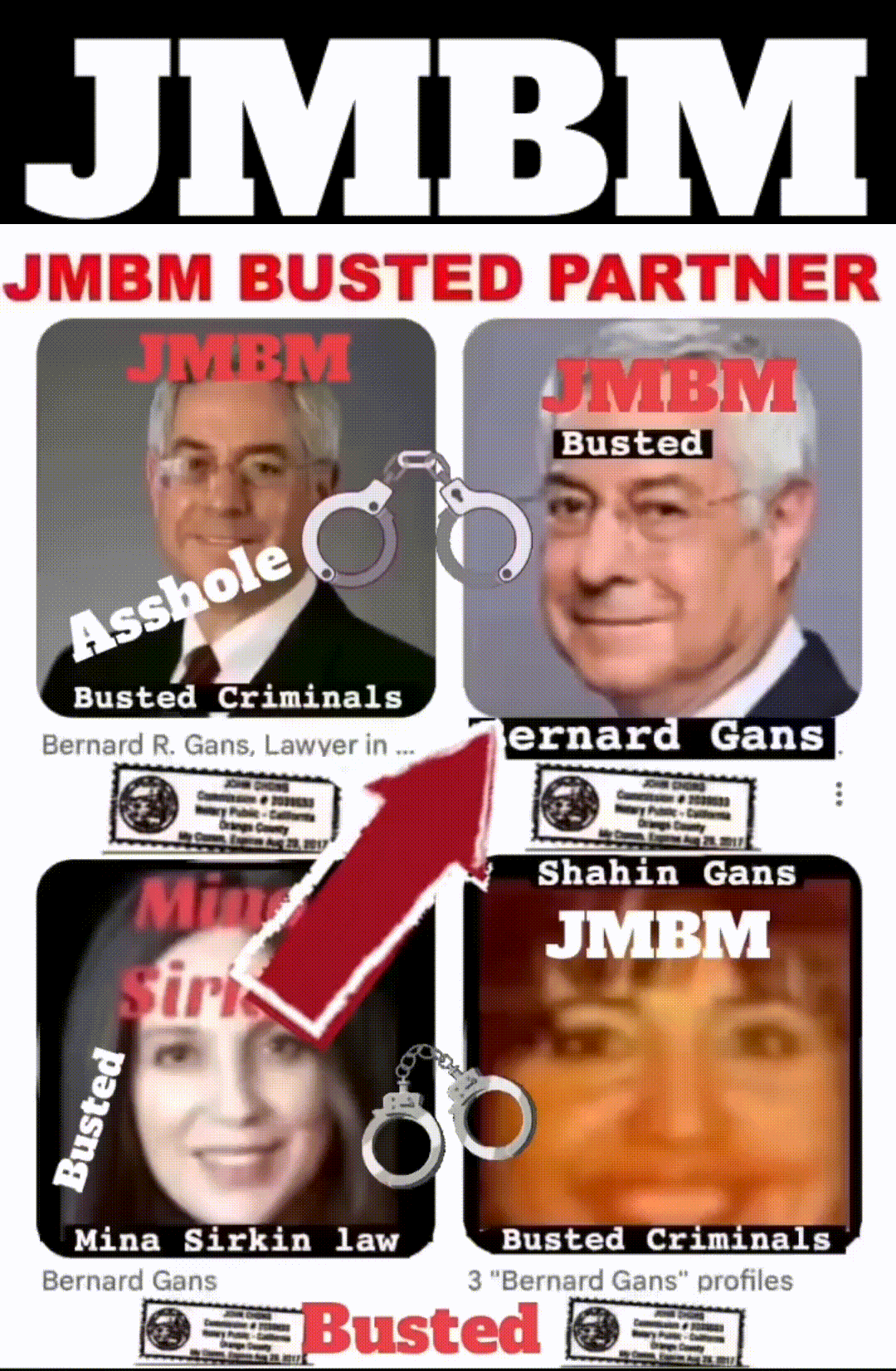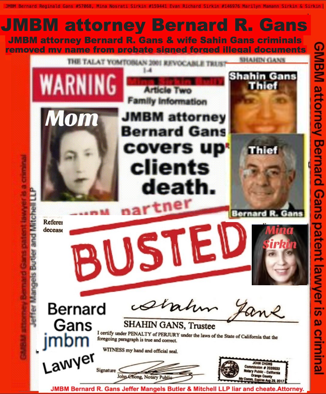 76 year old Century city JMBM busted attorney Bernard Reginald Gans known as Bernie graduate of Santa Barbara university married to Shahin Gans 50 years of success to satisfy his wife he made one stupid mistake and it all crashed down. Well done Bernie well done.Bernard R Gans Articles Jeffer Mangels Butler & Mitchel LLP 76 year old Century city JMBM busted attorney Bernard Reginald Gans known as Bernie graduate of Santa Barbara university married to Shahin Gans 50 years of success to satisfy his wife he made one stupid mistake and it all crashed down. Well done Bernie well done.Bernard R Gans Articles Jeffer Mangels Butler & Mitchel LLP