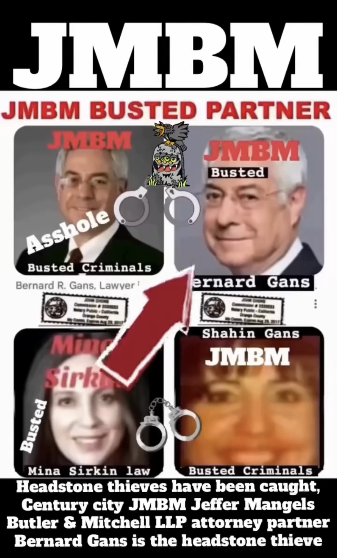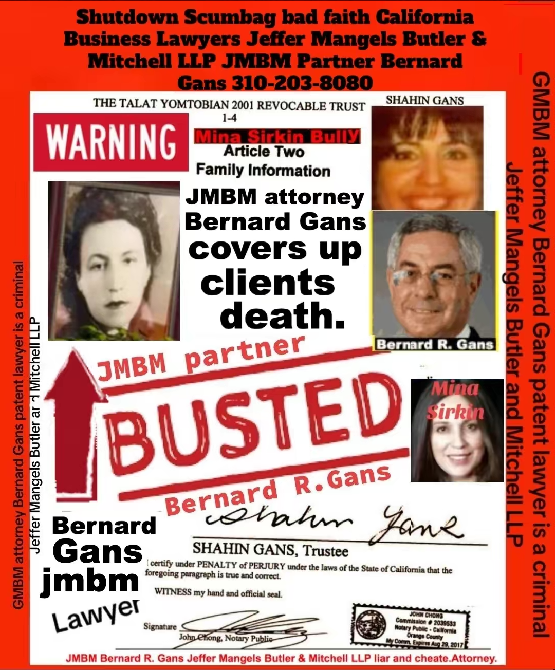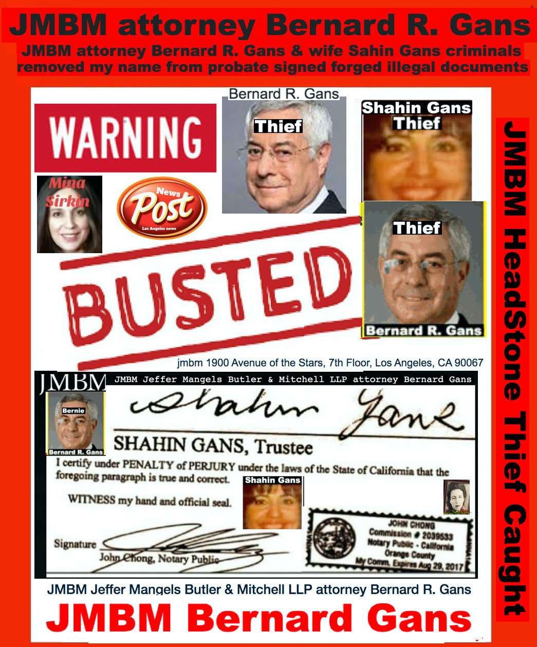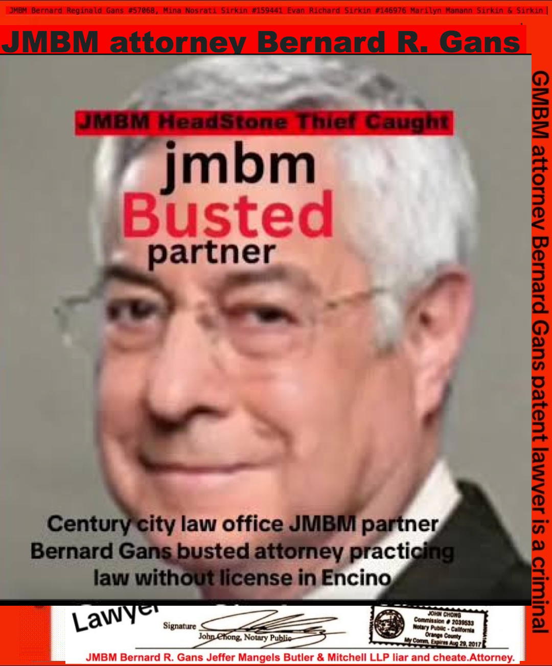 76 year old Century city JMBM busted attorney Bernard Reginald Gans known as Bernie graduate of Santa Barbara university married to Shahin Gans 50 years of success to satisfy his wife he made one stupid mistake and it all crashed down. Well done Bernie well done.Bernard R Gans Articles Jeffer Mangels Butler & Mitchel LLP 76 year old Century city JMBM busted attorney Bernard Reginald Gans known as Bernie graduate of Santa Barbara university married to Shahin Gans 50 years of success to satisfy his wife he made one stupid mistake and it all crashed down. Well done Bernie well done.Bernard R Gans Articles Jeffer Mangels Butler & Mitchel LLP