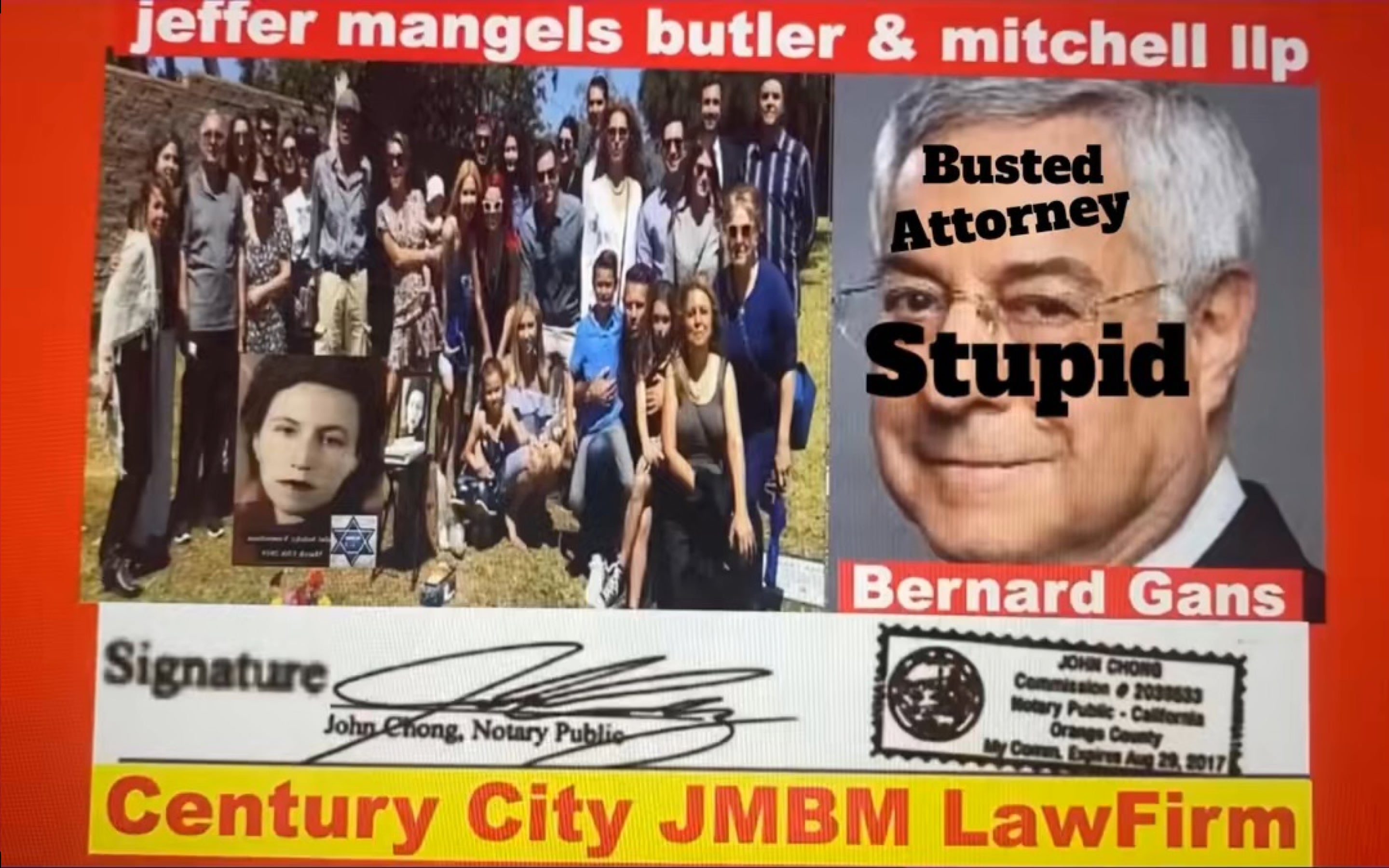 Family suing Anti Semitic JMBM Law office $500,000,000,000.00 Billion Dollars Lawsuit JMBM | Jeffer Mangels Butler & Mitchel LLP Articles Bernard Gans Lawyer Archives Press Release Headline news.